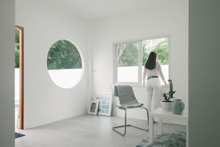 เนื่องจากใจความสำคัญของการรีโนเวทครั้งนี้เน้นฟังก์ชั่นการใช้งานของบ้านหลังเดิม จากห้องนอน 2 ห้อง ห้องน้ำ 1 ห้อง คุณแพรจึงเพิ่มห้องครัวเข้าไป เพิ่มเรื่องของดีไซน์เล็กๆ น้อยๆ ไม่ว่าจะเป็นหน้าต่างกลมบานหน้า เน้น Mood & Tone ของบ้านให้โล่ง โปร่ง สว่าง ดูอบอุ่นเพื่อฉีกไปจากบ้านหลังเดิม